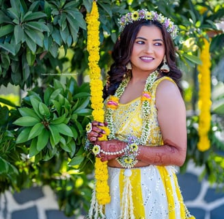 Floral jewellery features designs inspired by flowers, incorporating floral motifs in various forms, including necklaces, earrings, bracelets, and hair accessories. This style can use real flowers, artificial flowers, or metal and resin designs that mimic floral shapes.